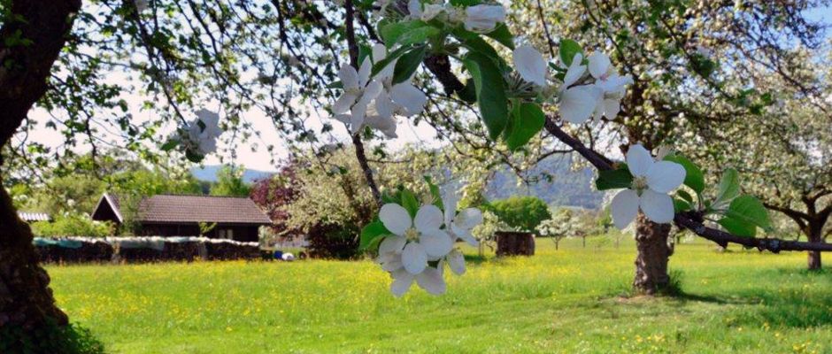 Unsere Streuobstwiese während der Blüte 2020